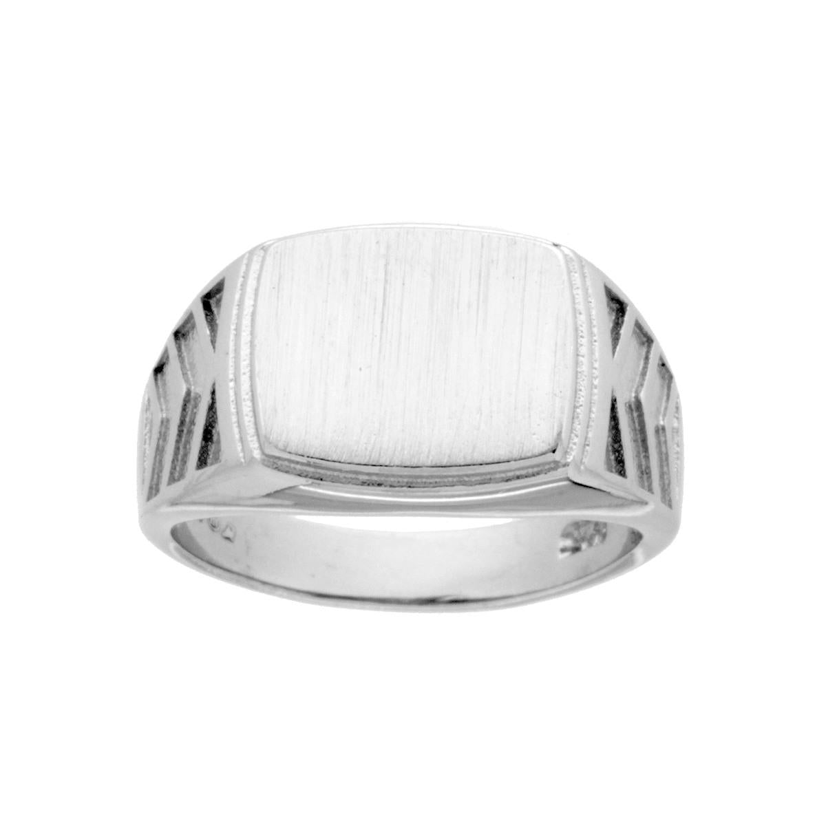 Anello Chevalier con Scudo Rettangolare Plain Satinato Decoro Geometrico in ARGENTO 925 Galvanica Rodio