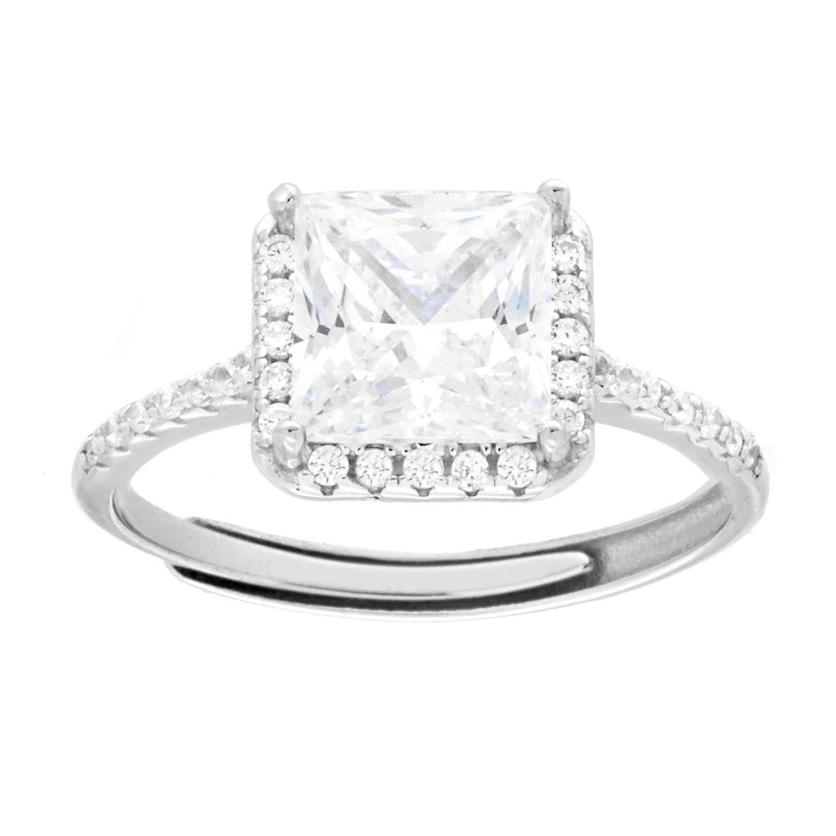 Anello Solitario con Cubic Zirconia quadrato Bianco in ARGENTO 925 Galvanica Rodio