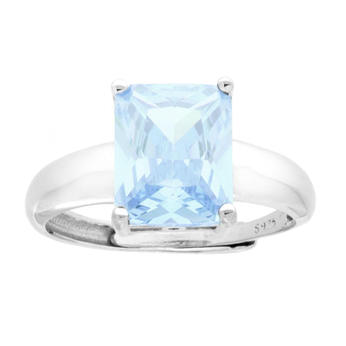 Anello Solitario Rettangolo Cubic Zirconia Acquamarina in ARGENTO 925 Galvanica Rodio