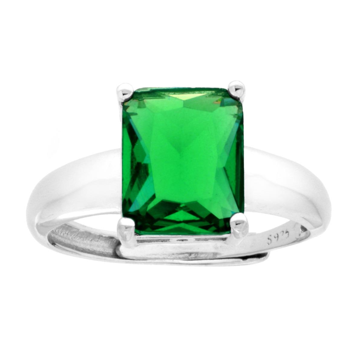 Anello Solitario Rettangolo Cubic Zirconia Verde Smeraldo in ARGENTO 925 Galvanica Rodio