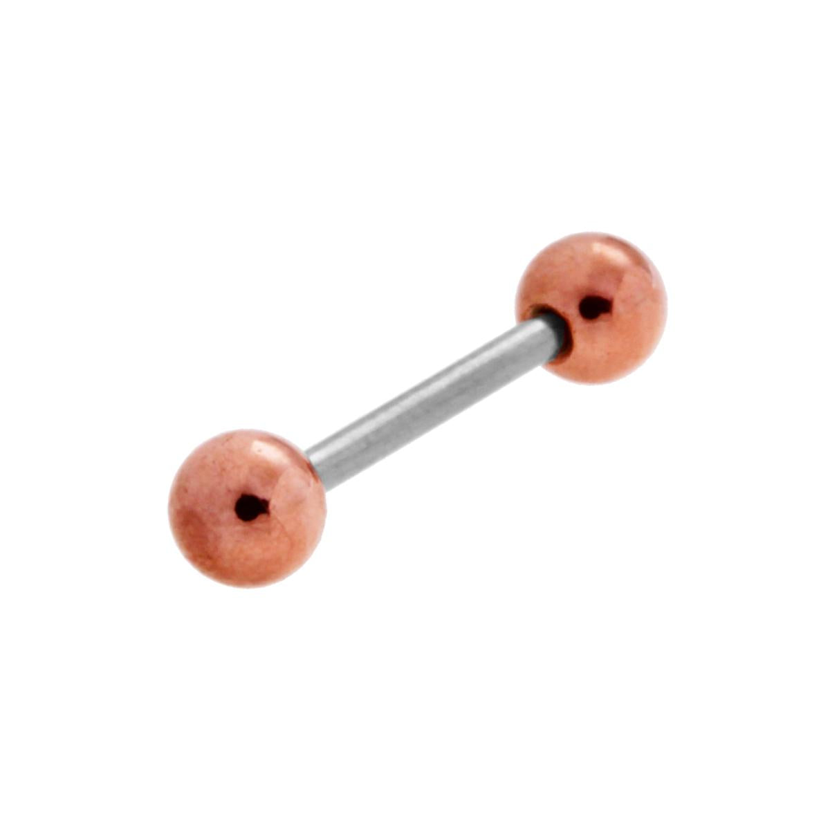 Body Piercing barra con palline colore rosè in acciaio con lavorazione liscia e lucida.