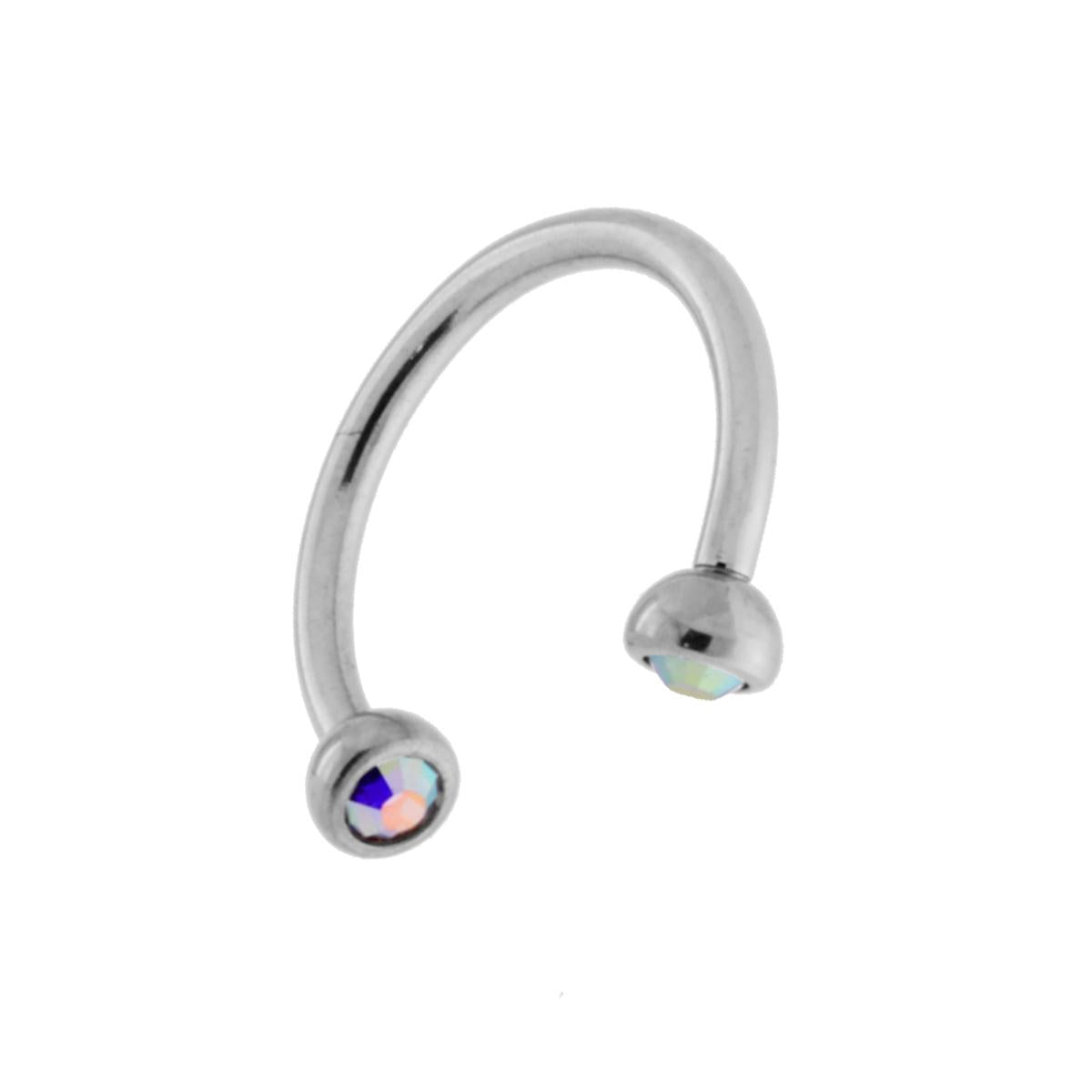 Body Piercing Circular Barbell con cerchio liscio e lucido con accessori palline con Crystal colore boreale incastonati.