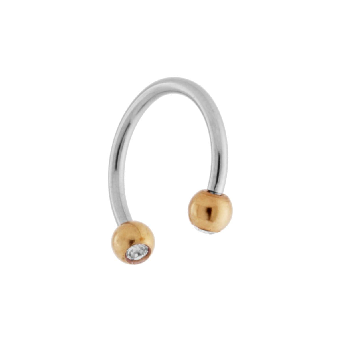 Body Piercing Circular Barbell con cerchio liscio e lucido e accessori palline colore oro con Crystal bianchi incastonati.