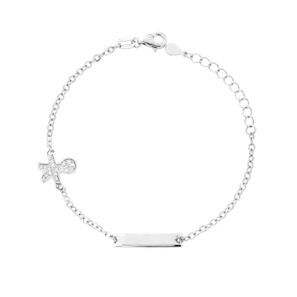 Bracciale Bimbo Bimba Catena Forzatina Diamantata con Targa e Bimbo con Cubic Zirconia Bianchi in ARGENTO 925 Galvanica Rodio