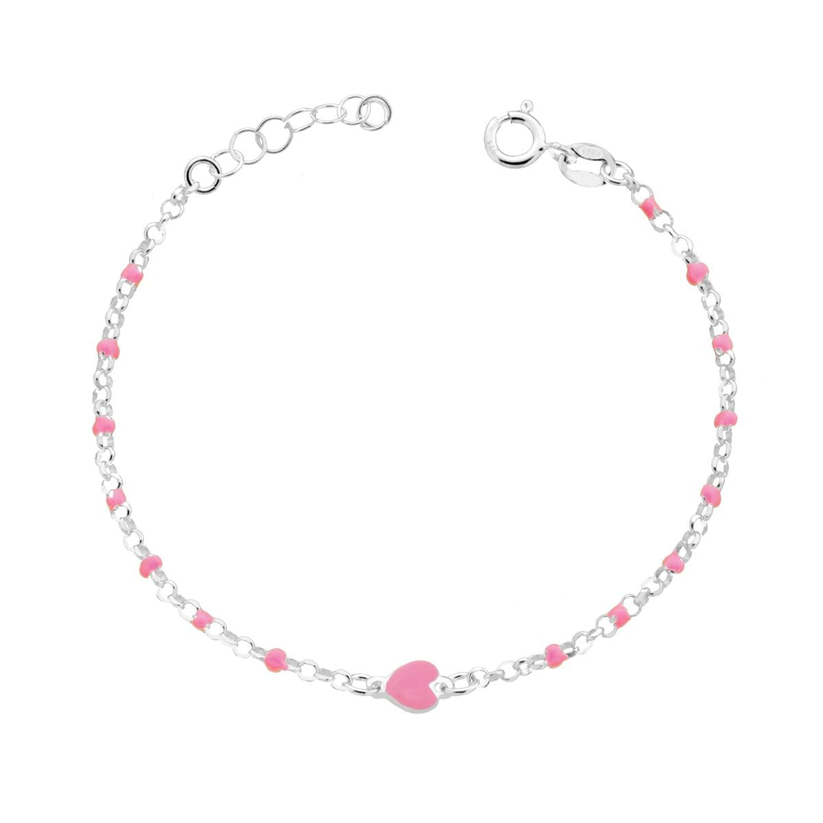 Bracciale Bimbo Bimba Catena Rolo Diamantata con Cuore smalto Rosa in ARGENTO 925