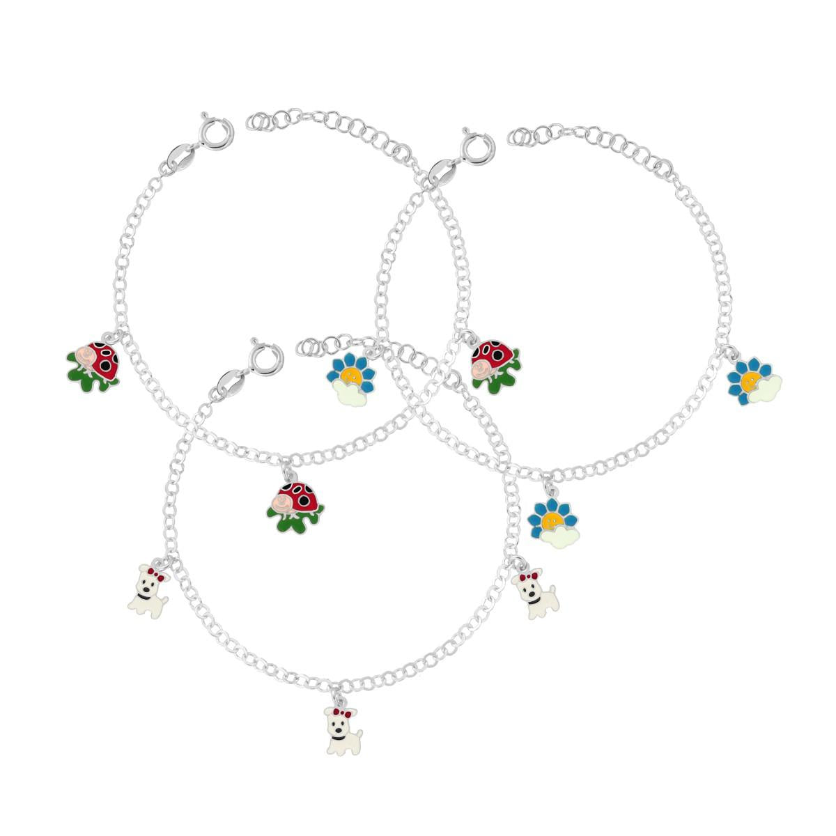 Bracciale Bimbo Bimba Catena Rolo Piatta con Soggetti Fantasy con Smalto Multicolor in ARGENTO 925