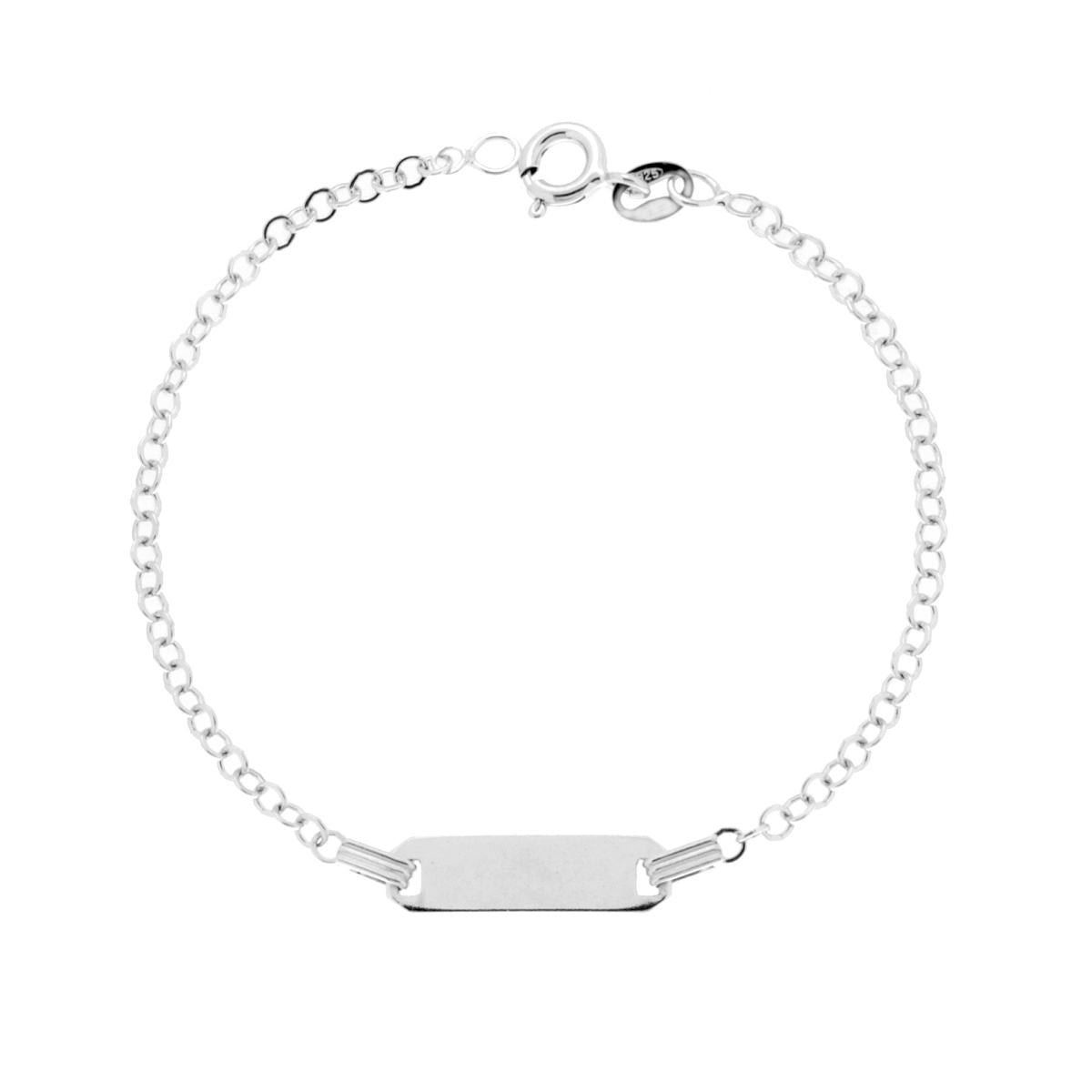 Bracciale Bimbo Bimba Targa Rettangolare Catena Forzatina Tonda Diamantata in ARGENTO 92