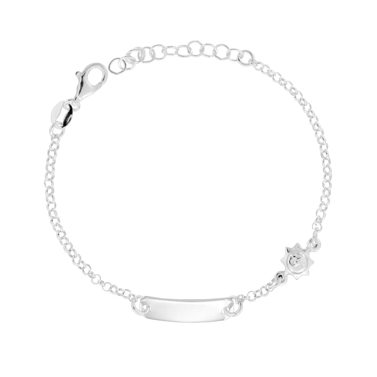 Bracciale Bimbo Bimba Targa Rettangolare con Catena Rolo e Sole Bombato in ARGENTO 925
