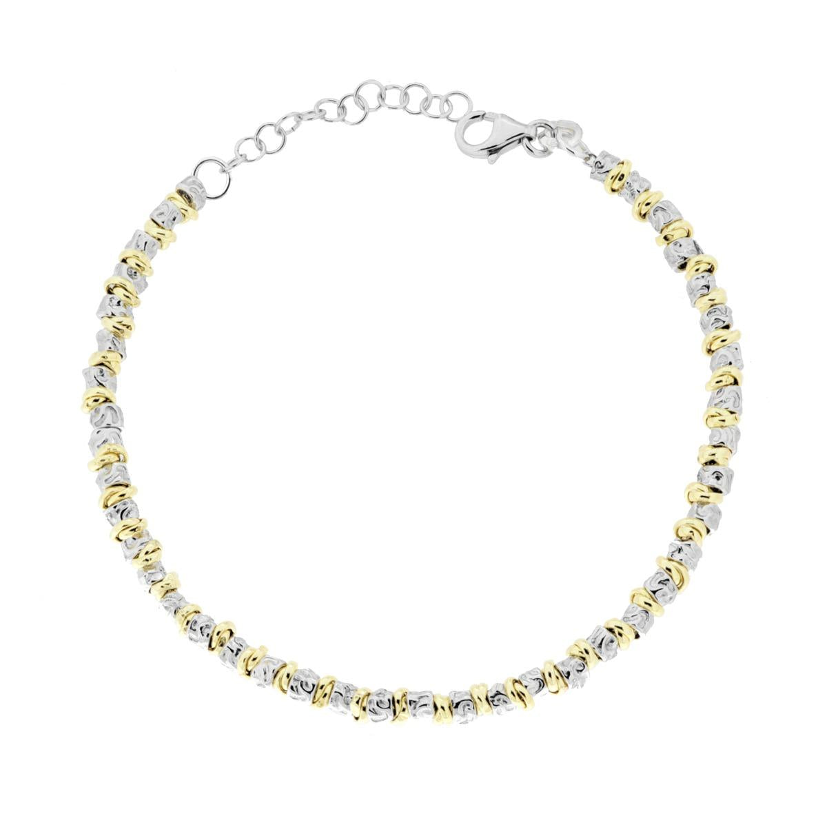 Bracciale Catena con Cilindretti Martellati ed Anelli Nodo in ARGENTO 925 Galvanica Rodio e Oro
