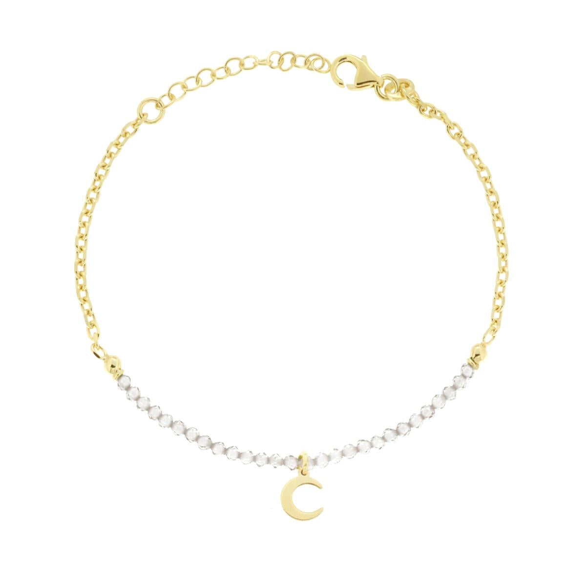 Bracciale Catena Forzatina Diamanta con Luna plain pendente e Crystal Bianchi in ARGENTO 925 Galvanica Oro