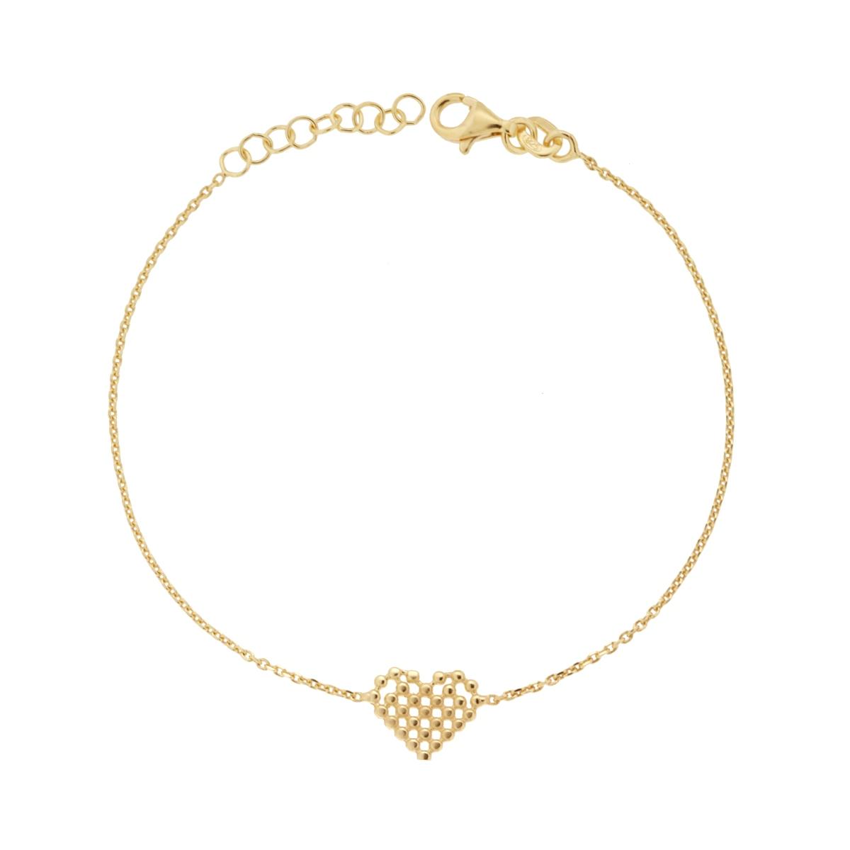 Bracciale Catena Forzatina Diamantata con Cuore Pallinato in ARGENTO 925 Galvanica Oro