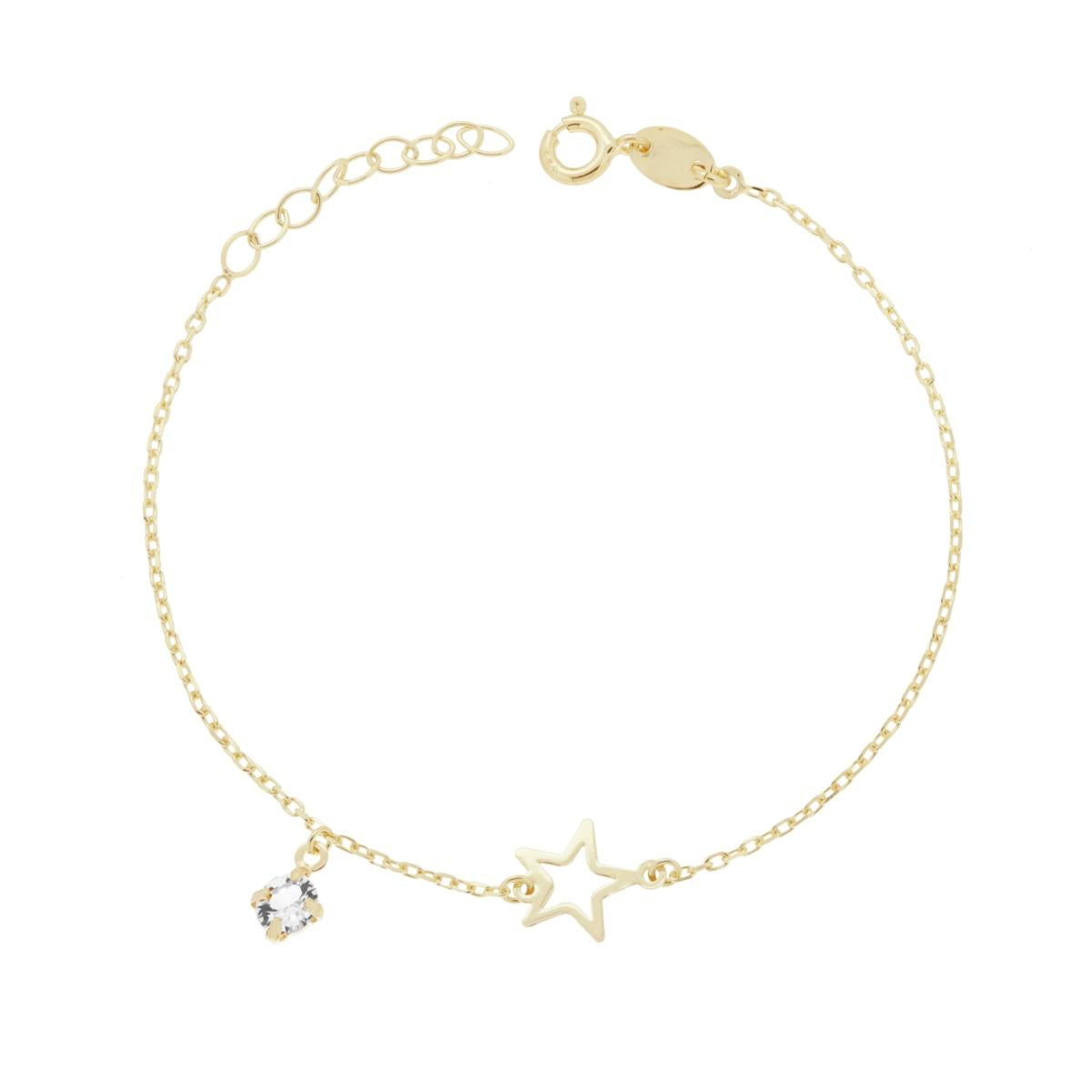 Bracciale Catena Forzatina Diamantata con Punto Luce Cubic Zirconia Bianco e Stella in ARGENTO 925 Galvanica Oro
