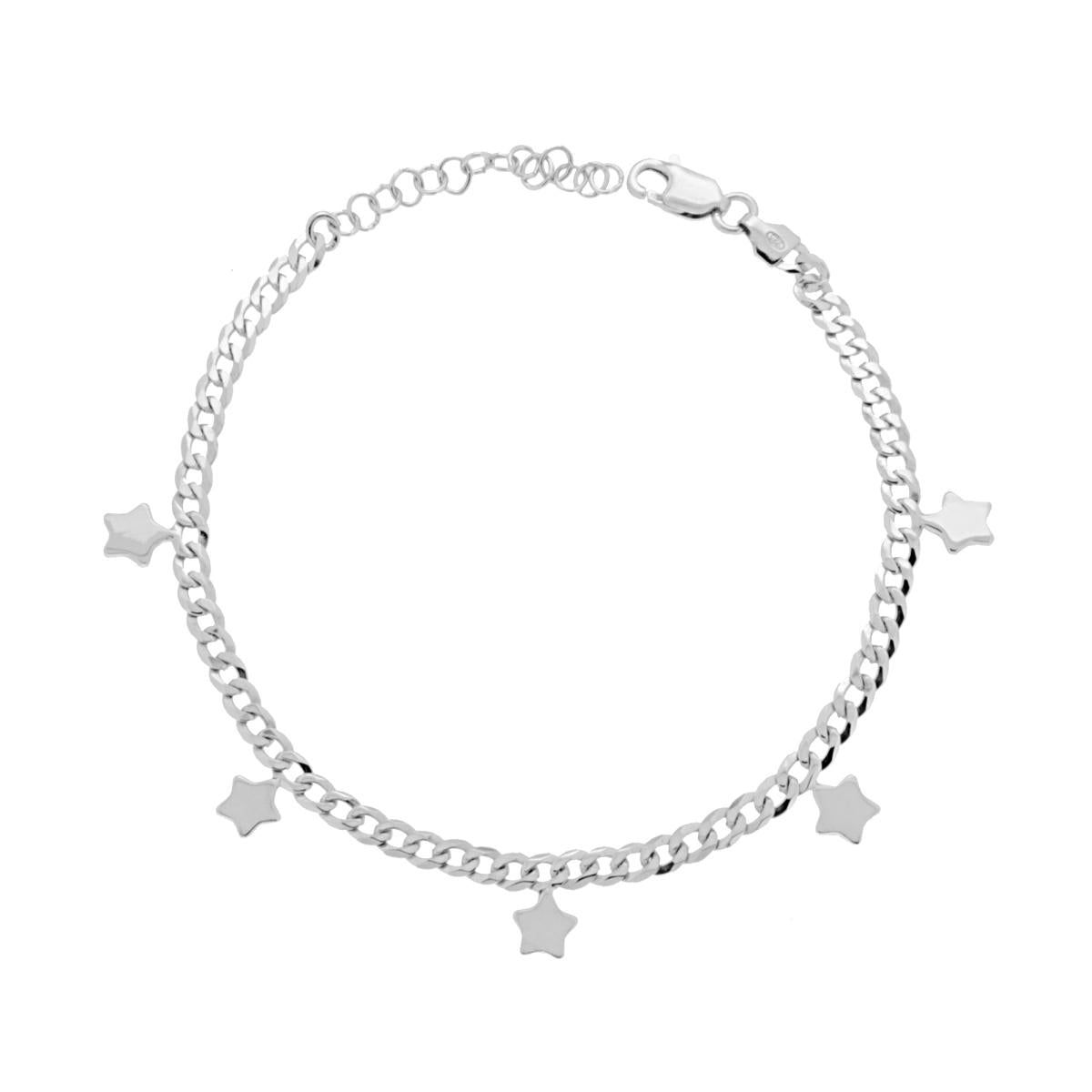 Bracciale Catena Grumetta con Stelle plain pendenti in ARGENTO 925 Galvanica Rodio