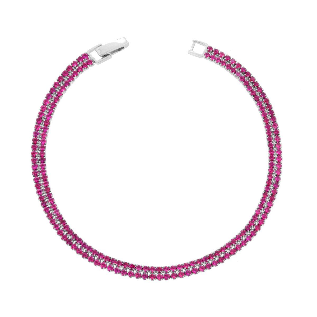 Bracciale due fili Tennis con Cubic Zirconia Rosso Rubino in ARGENTO 925 Galvanica Rodio