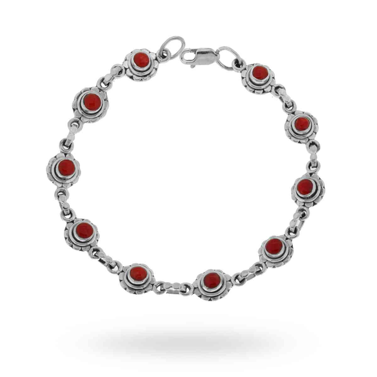 Bracciale Etnico Thailandese con Pietre Corallo in ARGENTO 925