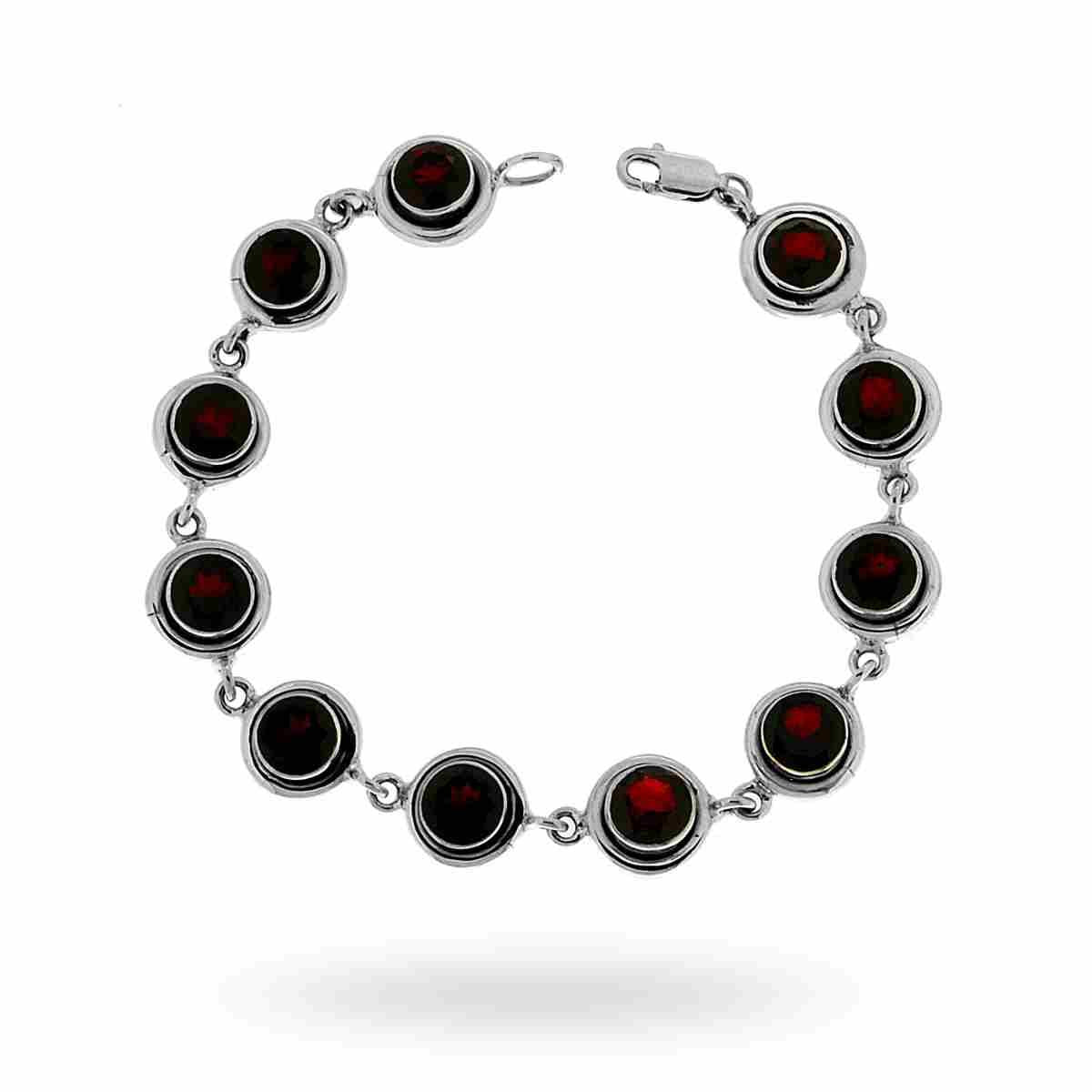 Bracciale Etnico Thailandese con Pietre sfaccettate Granato in ARGENTO 925