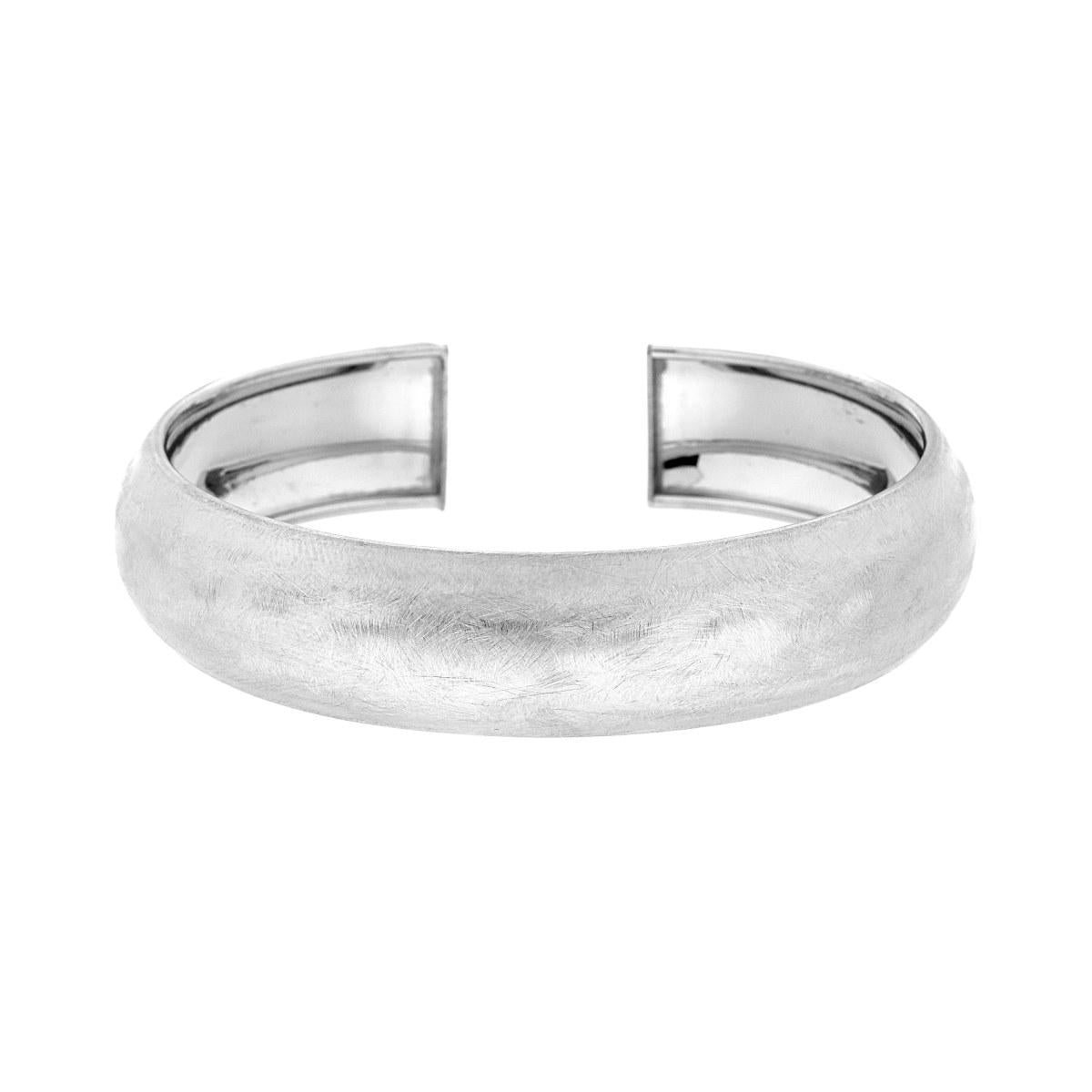 Bracciale rigido a fascia bombata con finitura spazzolata e brillante.