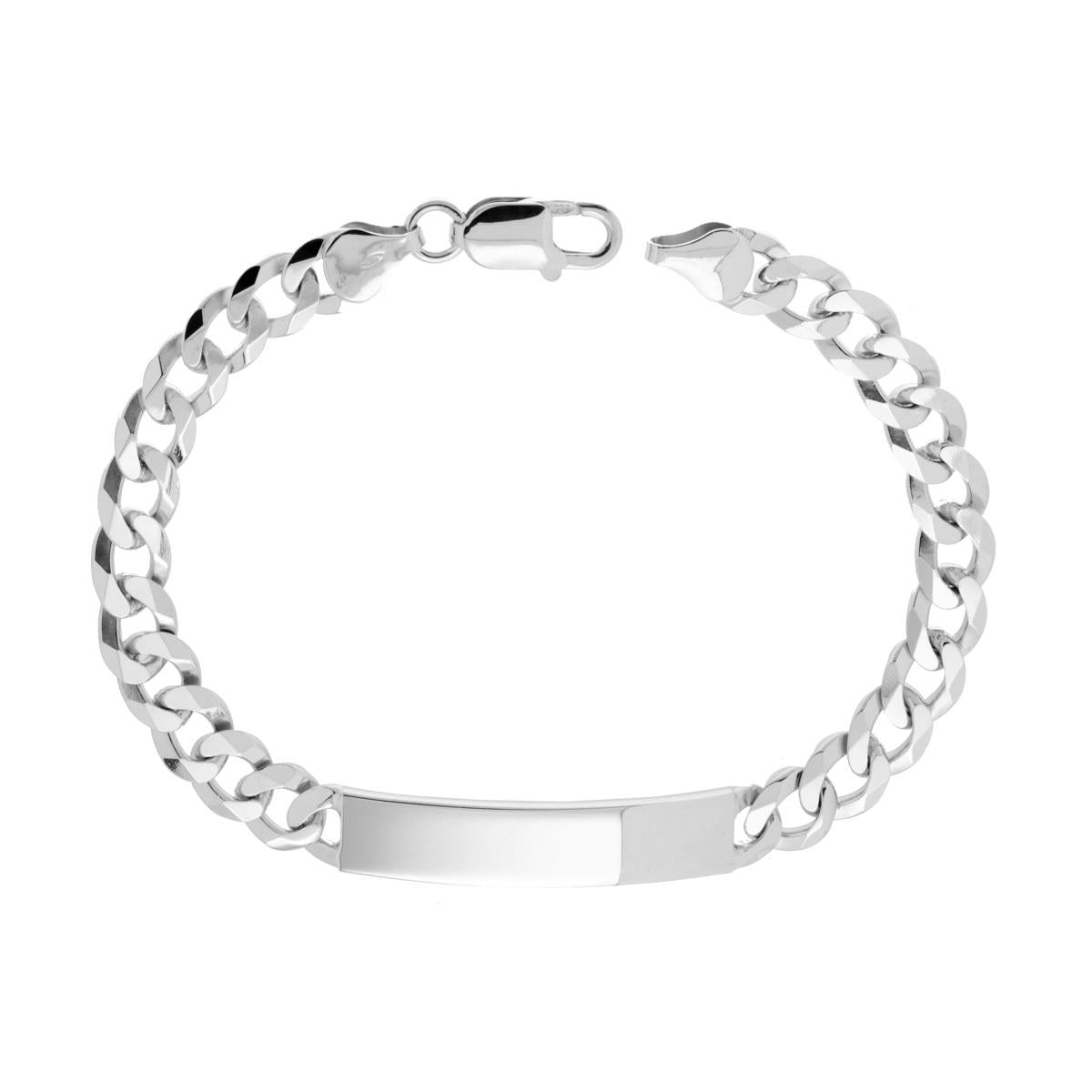 Bracciale Targa Uomo con Catena Grumetta Diamantata 6 lati 180 cm 21,5 in ARGENTO 925 Galvanica Rodio