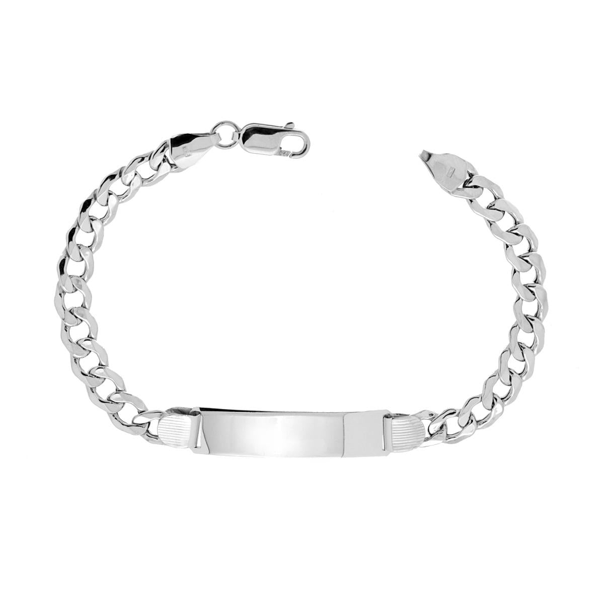 Bracciale Targa Uomo con Catena Grumetta vuota cm 21 in ARGENTO 925 Galvanica Rodio