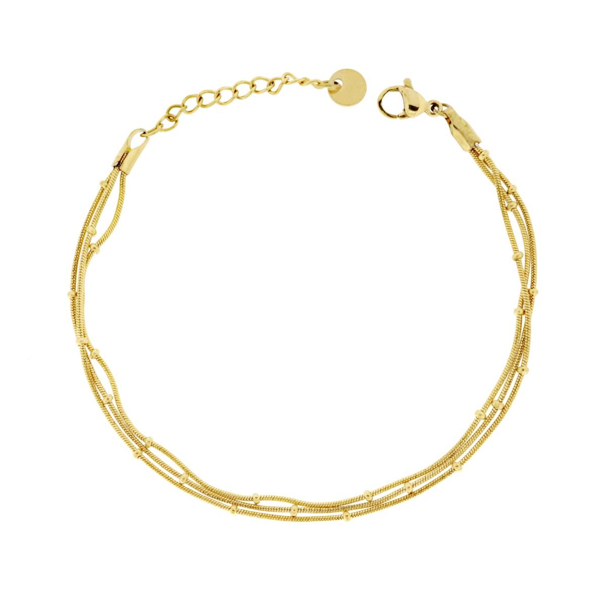 Bracciale tre fili Catena Coda di Topo in ACCIAIO colore Oro