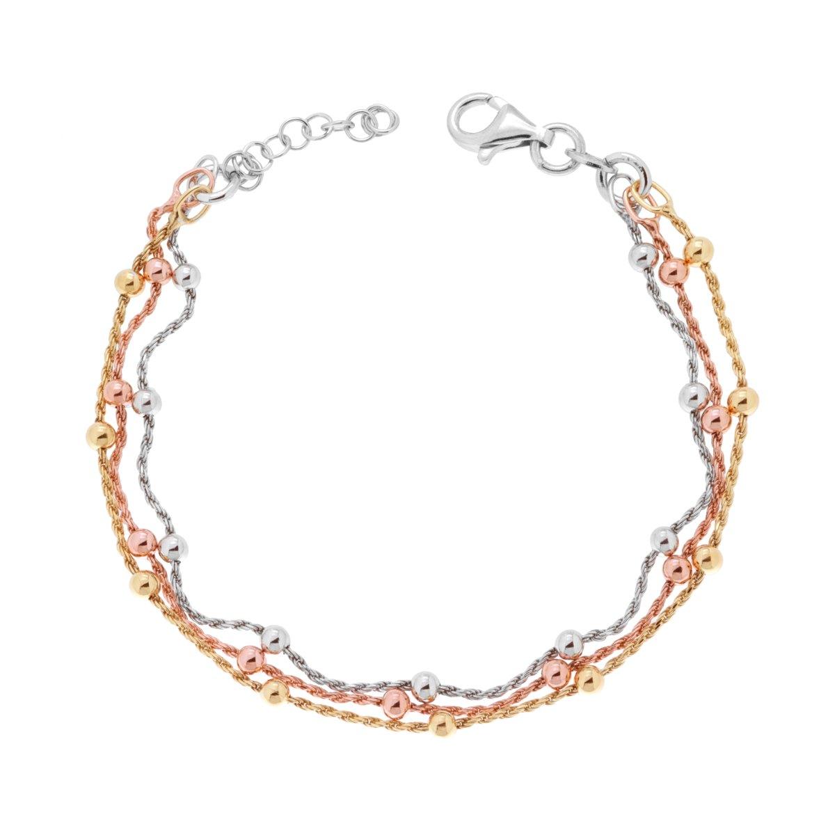 Bracciale tre fili Catena Corda Diamantata con Palline Lisce mm 3 in ARGENTO 925 Galvanica Rodio Oro e Rosa