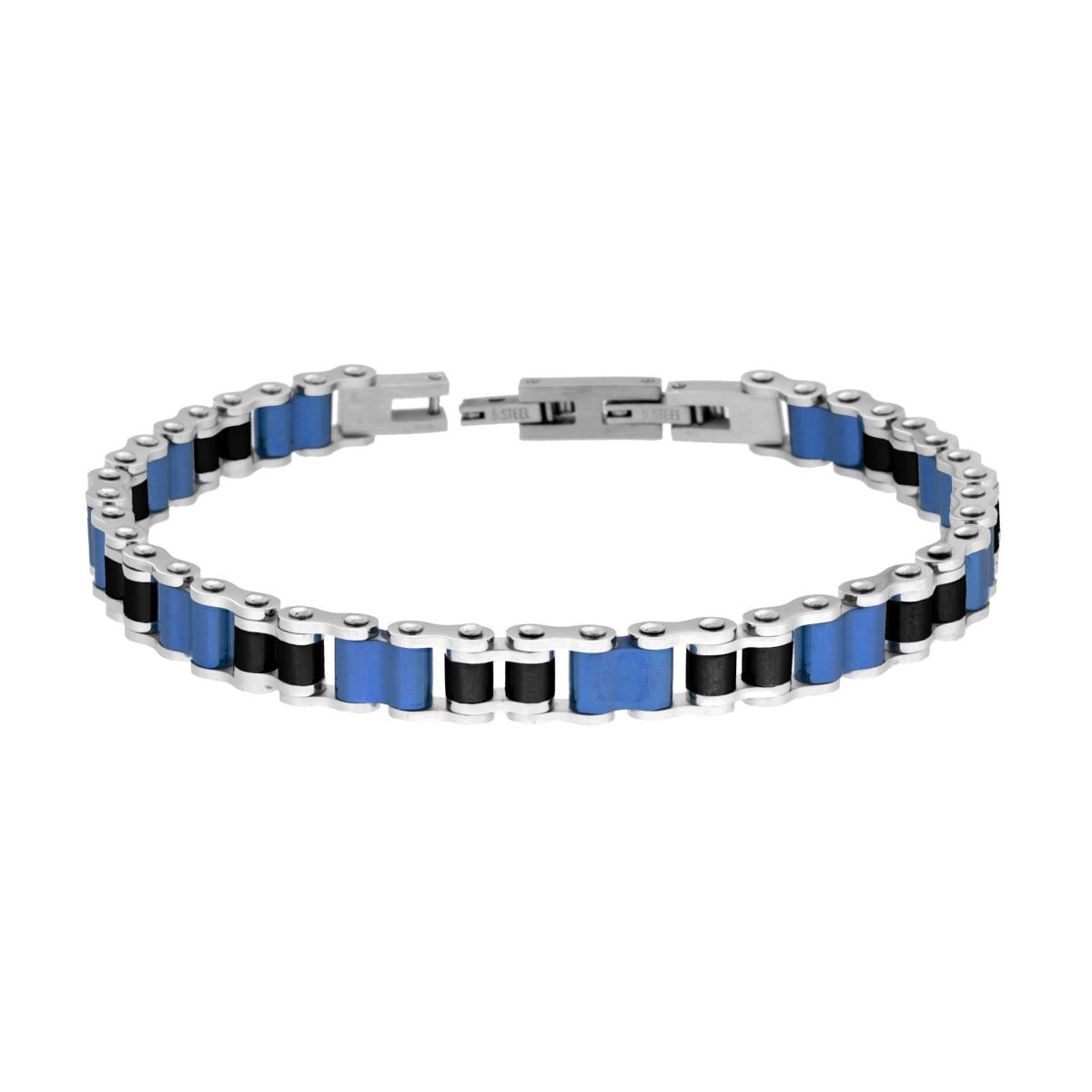 Bracciale Uomo Catena Imperniata colore Nero e Blu in ACCIAIO