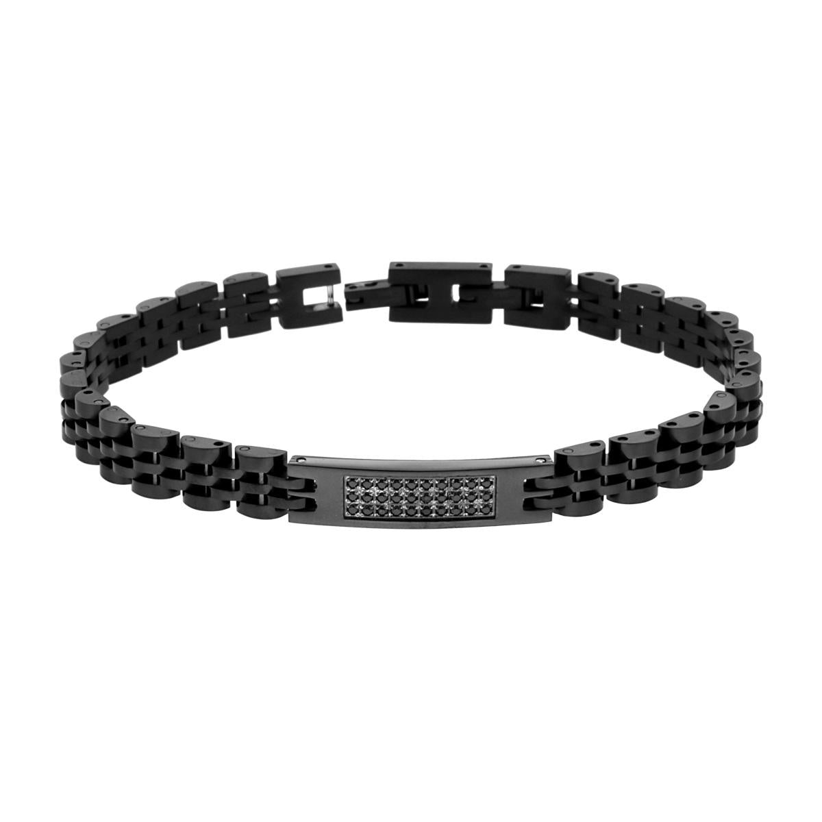 Bracciale Uomo Catena Imperniata con Targa e Crystal Neri in ACCIAIO colore Nero