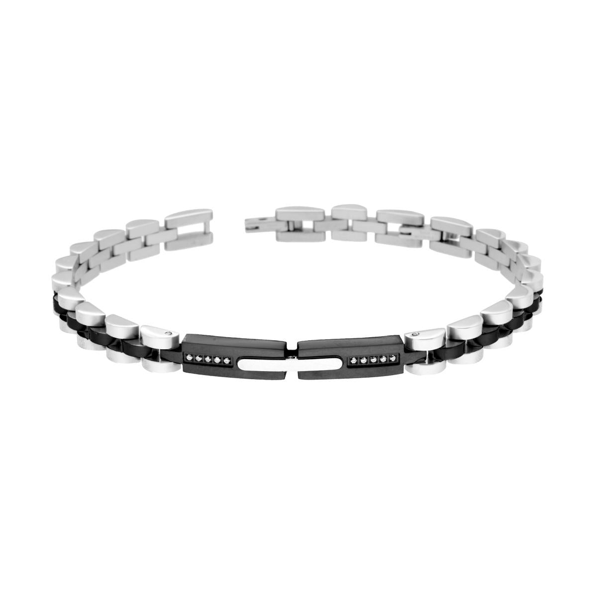 Bracciale Uomo Catena Imperniata con Targa Nera e Crystal Bianchi in ACCIAIO