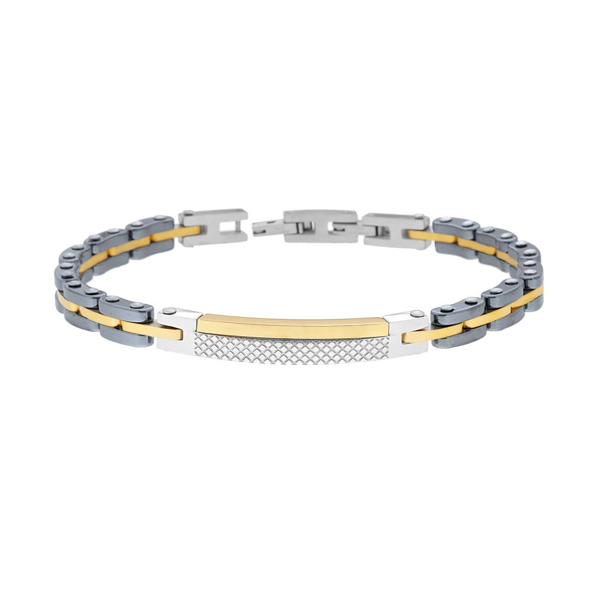 Bracciale Uomo Catena Imperniata in Ceramica Antracite e Oro con Targa in ACCIAIO