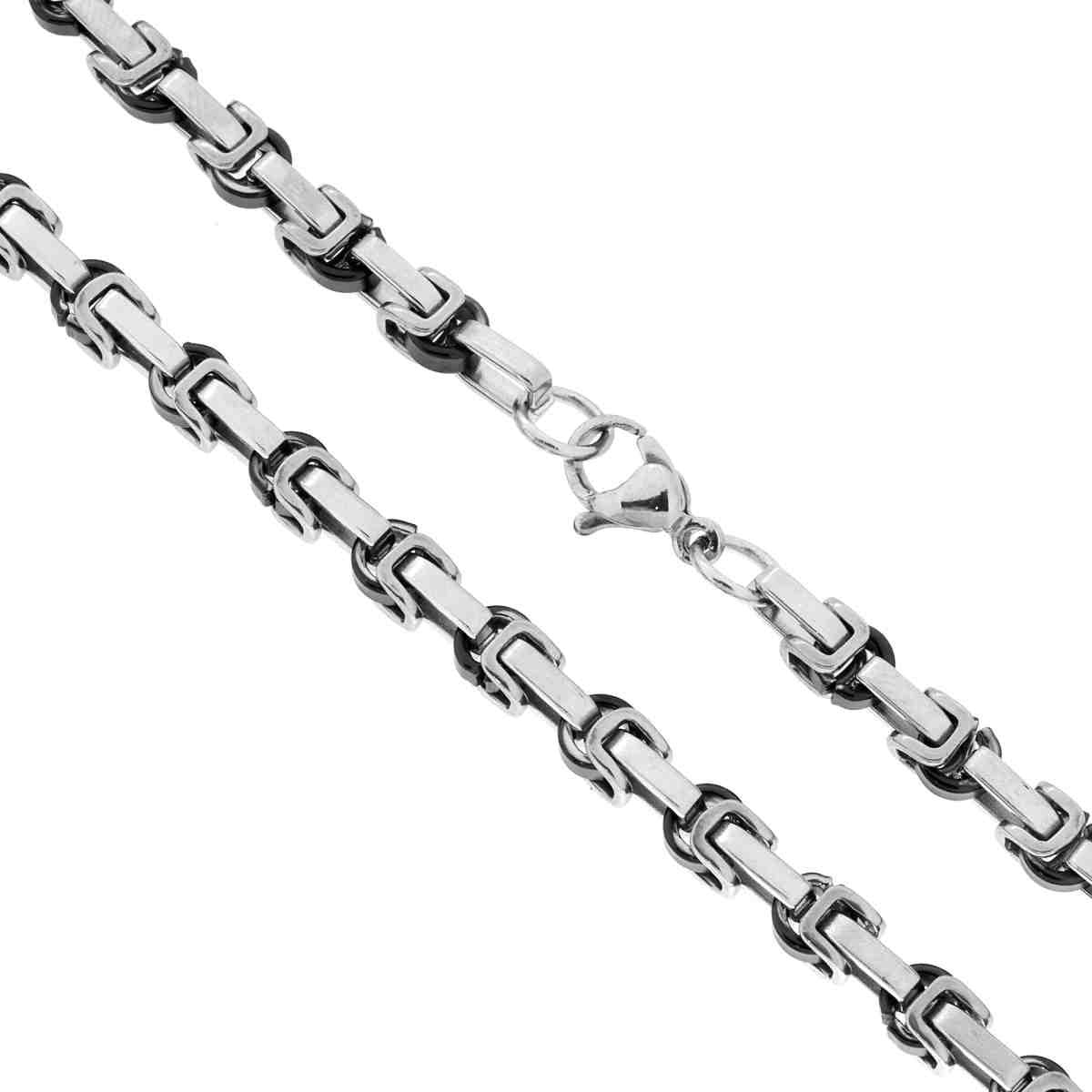 Catena con maglia Bizantina allungata alternata colore nero con lavorazione lucida e brillante.