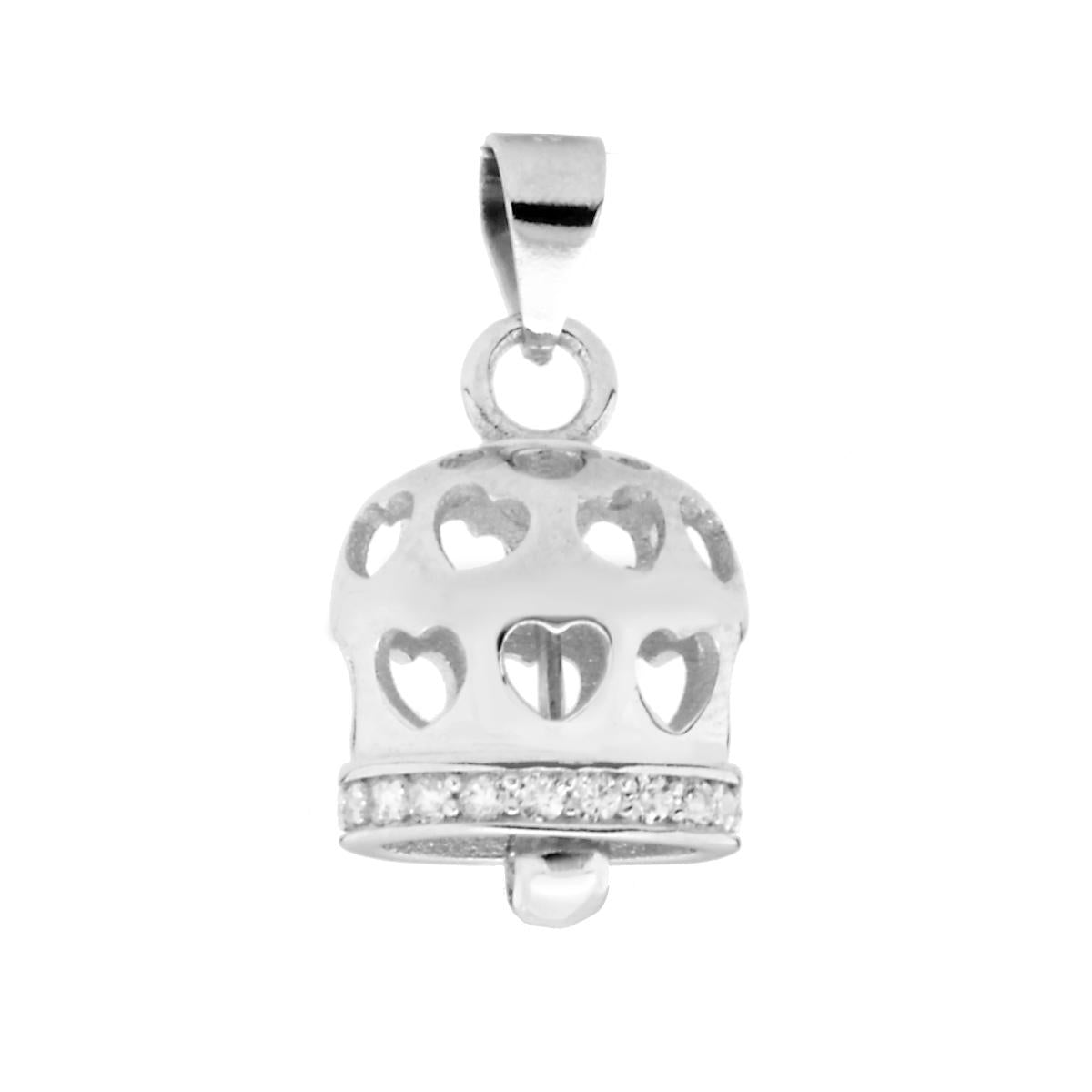 Ciondolo a forma di Campana con Cuori e Zirconi in ARGENTO 925 Galvanica Rodio