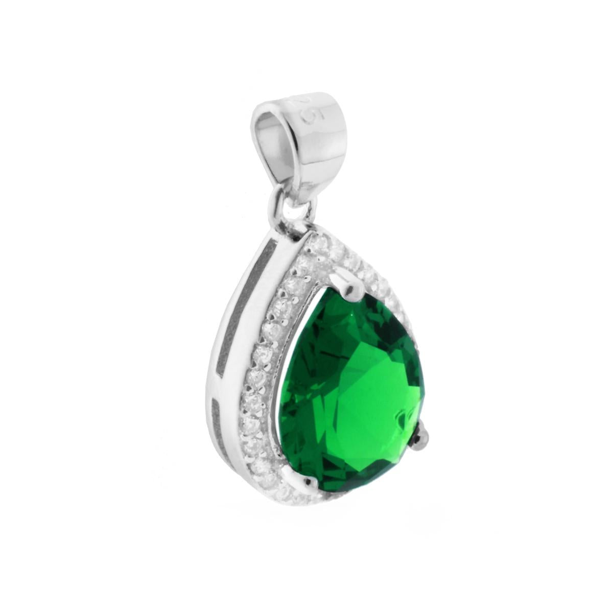 Ciondolo a Goccia con Zircone Verde Smeraldo contornato con Zirconi Bianchi in ARGENTO 925 Galvanica Rodio