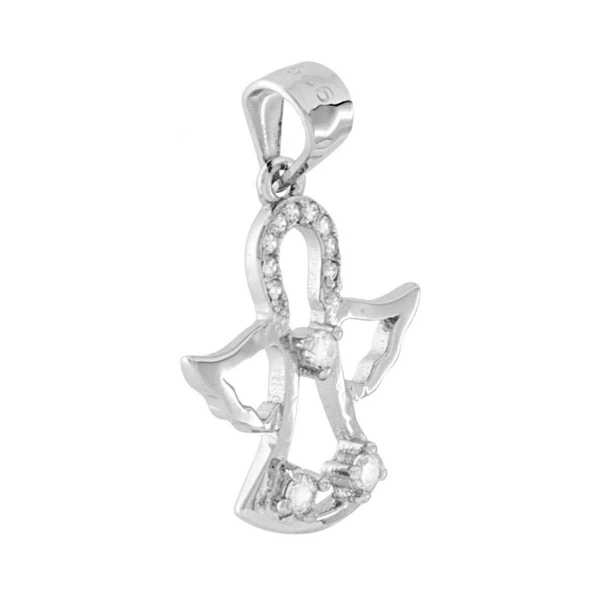 Ciondolo Angelo con Zirconi Bianchi in ARGENTO 925 Galvanica Rodio