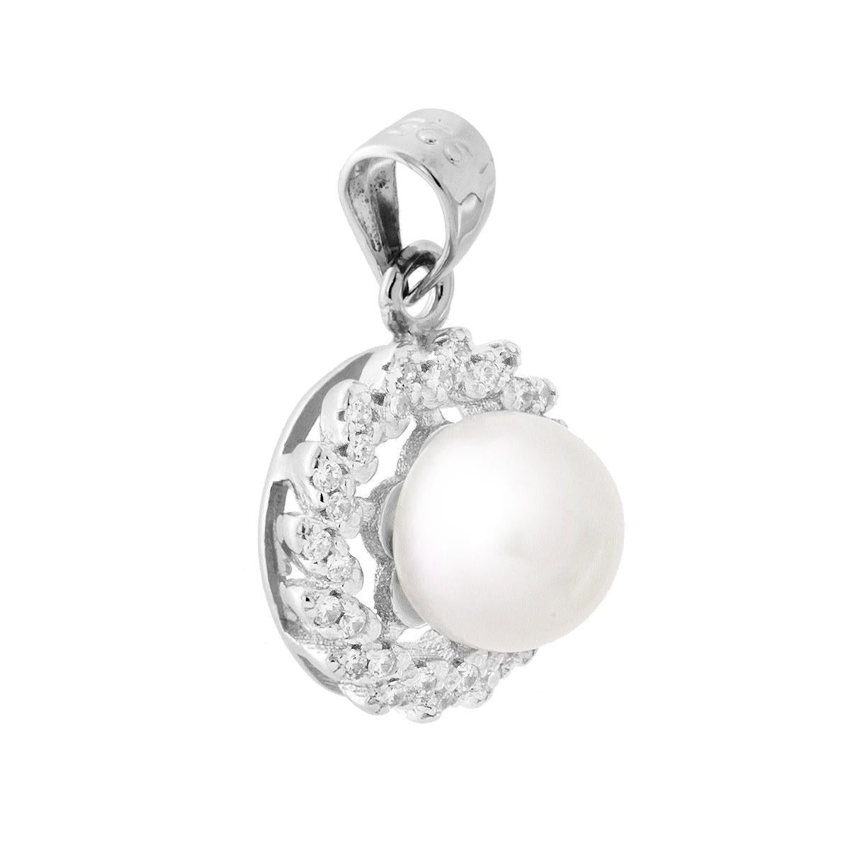 Ciondolo con Perla di fiume e Zirconi Bianchi in ARGENTO 925 Galvanica Rodio