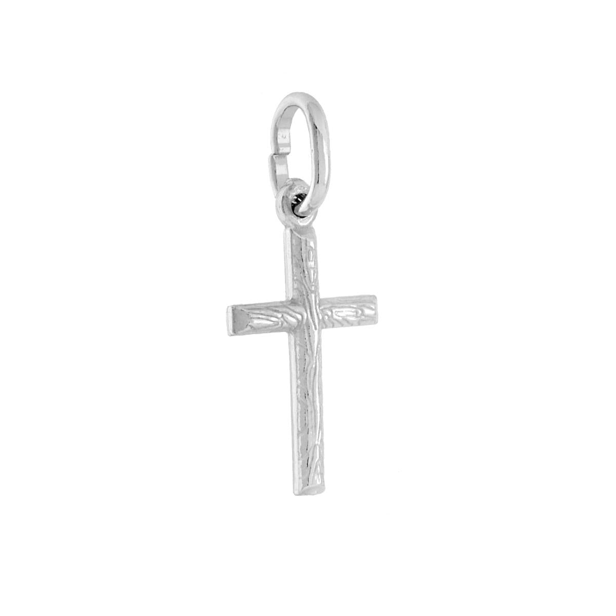 Ciondolo Croce Latina effetto Legno in ARGENTO 925 Galvanica Rodio
