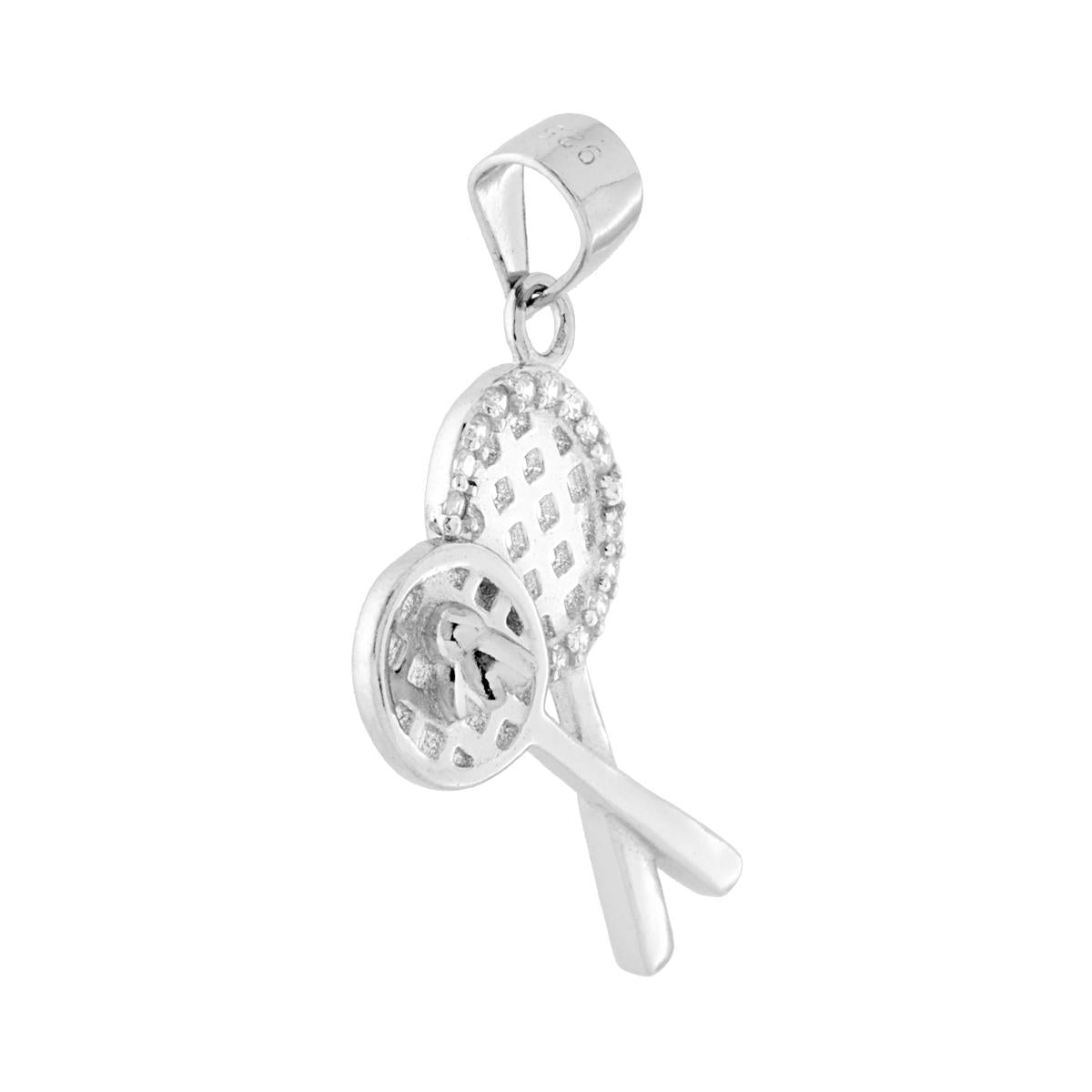 Ciondolo con due racchette incrociate con zirconi bianchi incastonati e finitura lucida.