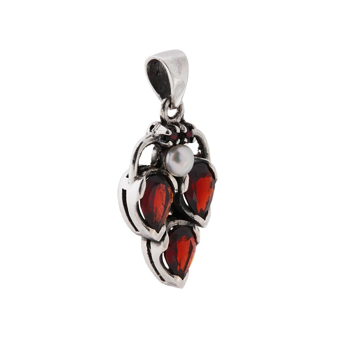Ciondolo Etnico Foglia con Pietre Naturali Granato a Goccia e Perla in ARGENTO 925