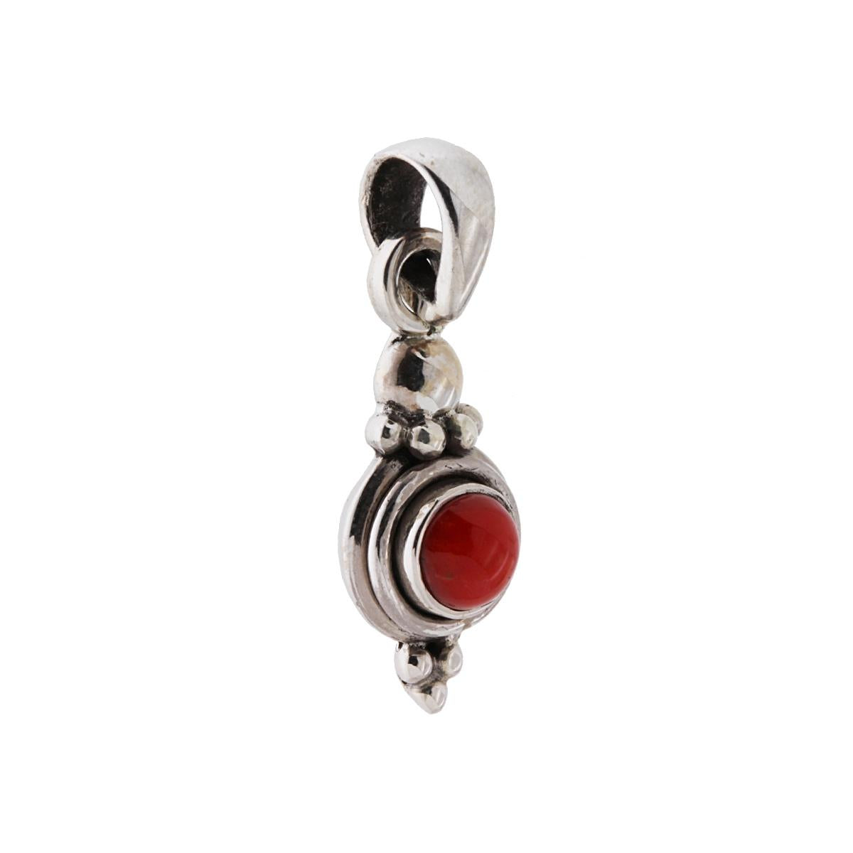 Ciondolo Etnico Tondo Pietra Corallo in ARGENTO 925