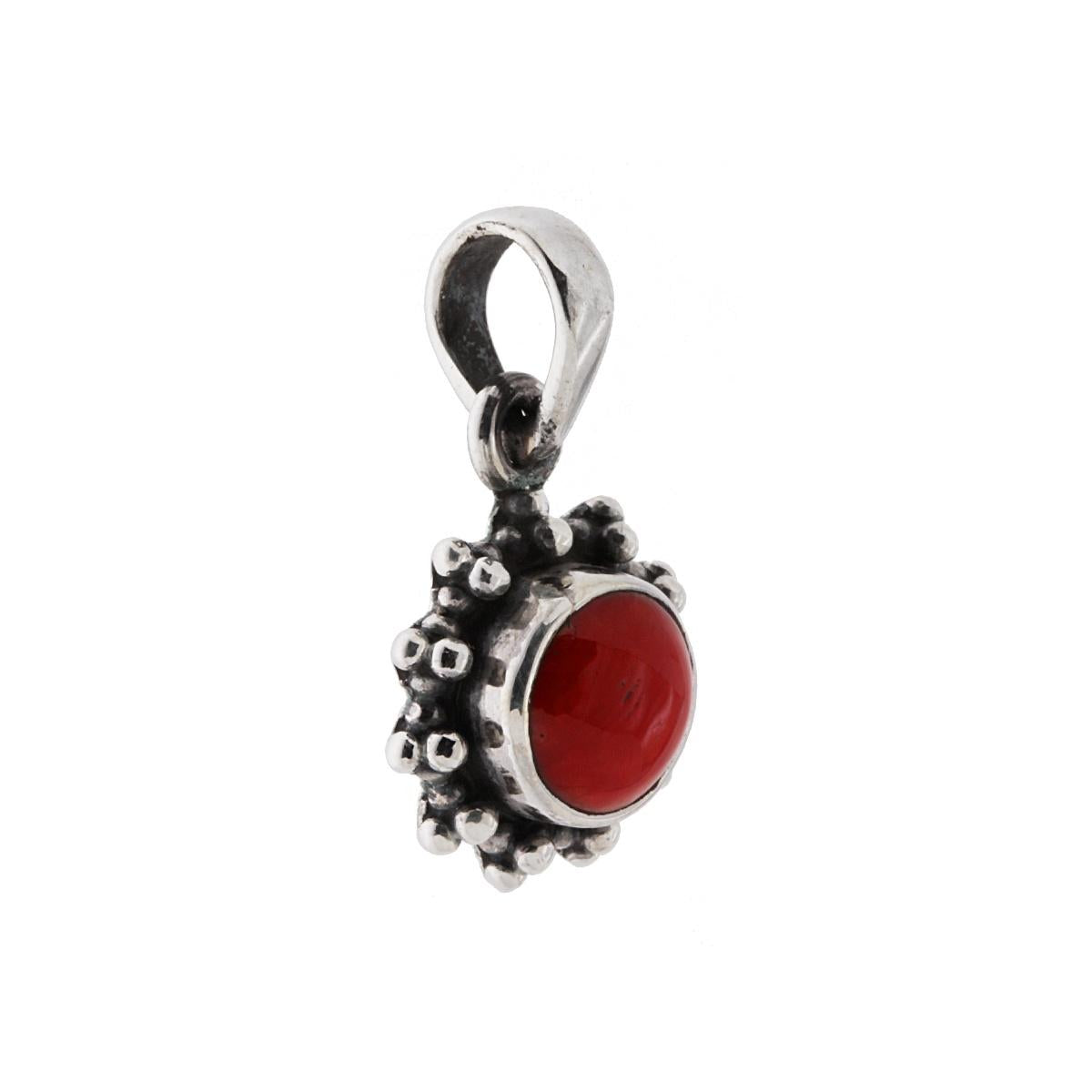 Ciondolo Etnico Tondo Sole e Pietra Corallo in ARGENTO 925