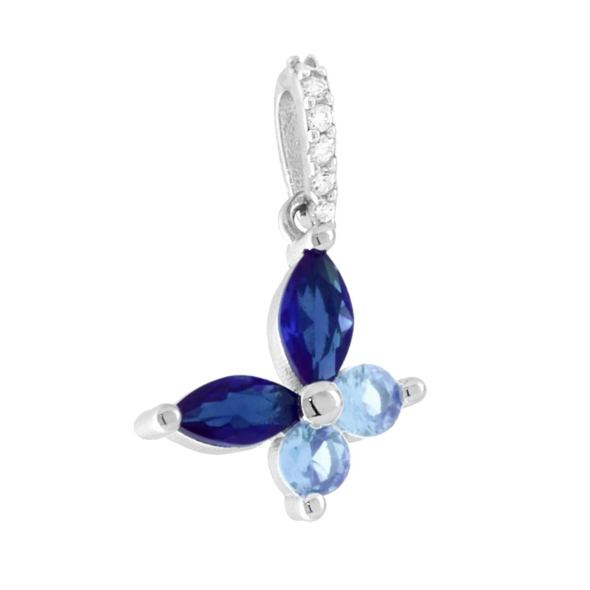Ciondolo Farfalla con Cubic Zirconia Marquise Blu Zaffiro e Acquamarina in ARGENTO 925 Galvanica Rodio