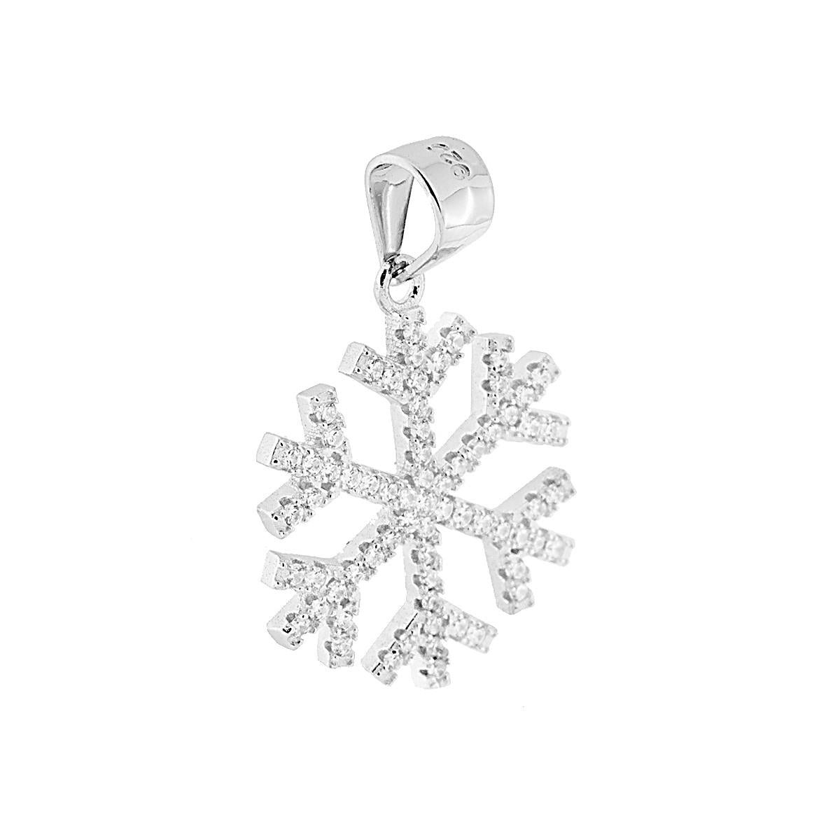 Ciondolo Fiocco di Neve con Zirconi Bianchi in ARGENTO 925 Galvanica Rodio