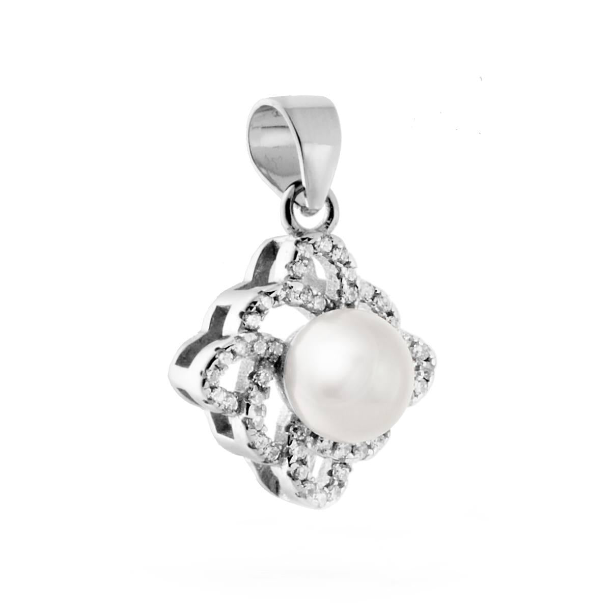 Ciondolo Geometrico con Perla di fiume e Zirconi Bianchi in ARGENTO 925 Galvanica Rodio