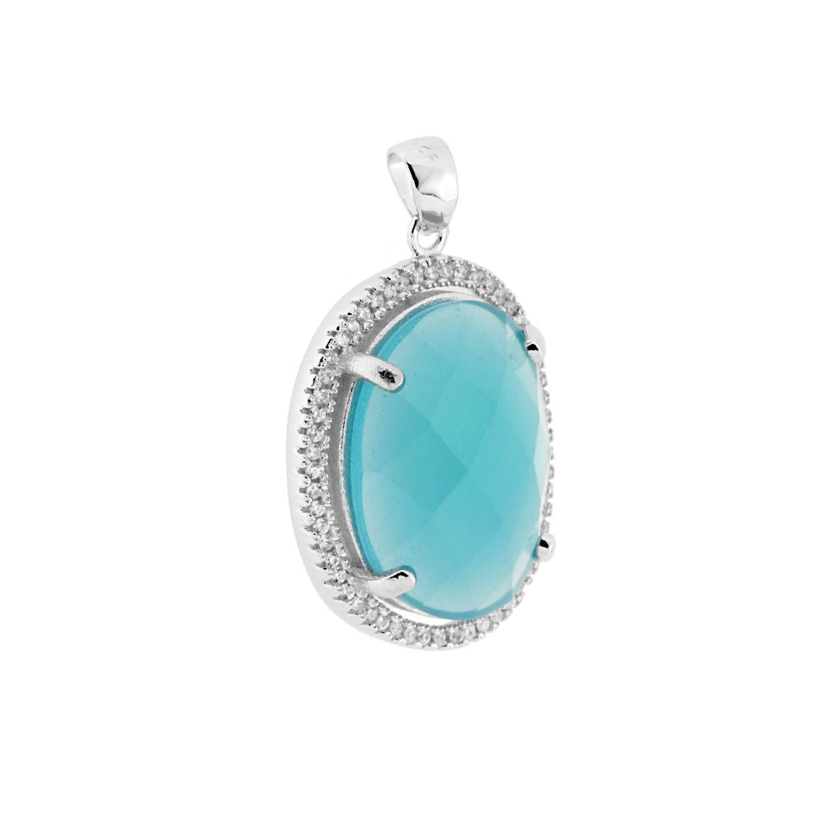 Ciondolo a forma Geometrica Ovale con pietra Turchese sfaccettata contornata con Zirconi Bianchi.