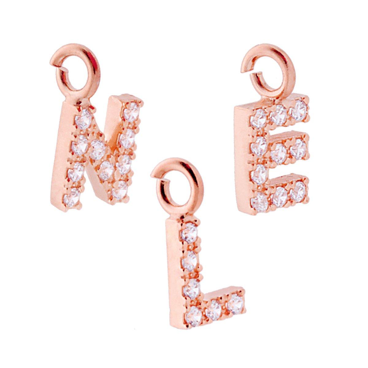 Ciondolo Lettera Iniziale Nome 11 mm con Zirconi Bianchi in ARGENTO 925 Galvanica Rosa