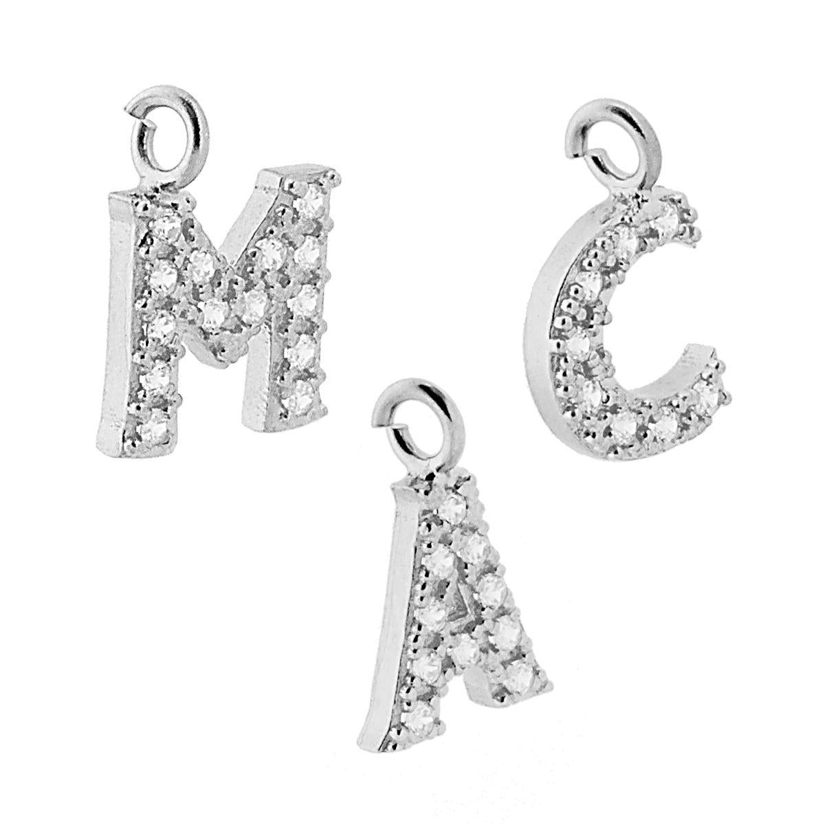 Ciondolo Lettera Iniziale Nome 13 mm con Zirconi Bianchi in ARGENTO 925 Galvanica Rodio