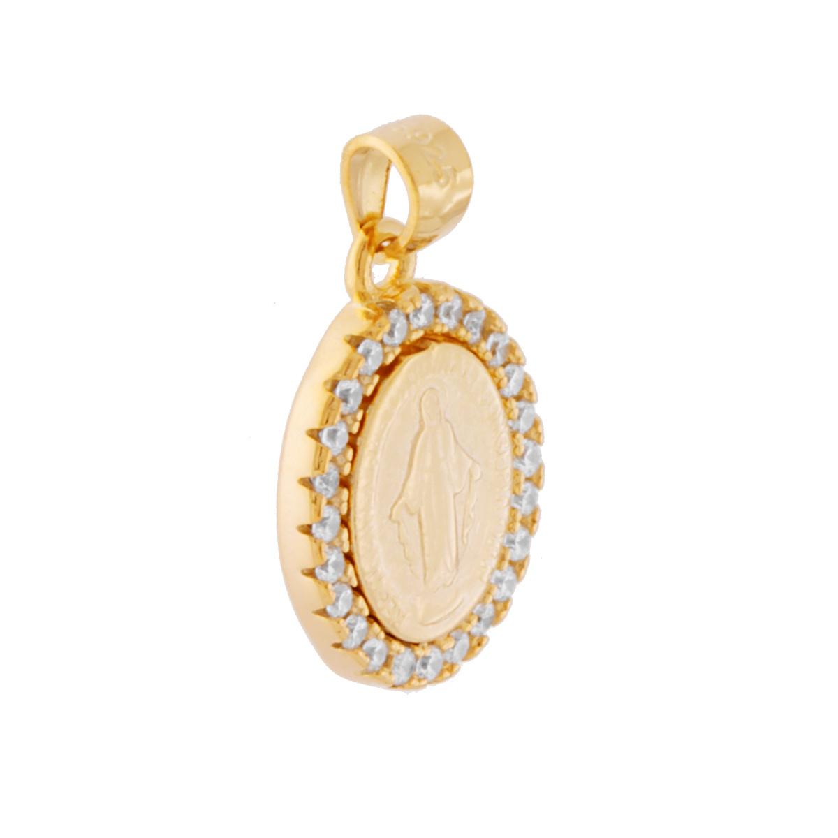 Ciondolo Medaglia Ovale 15 mm con Madonna Miracolosa e Zirconi Bianchi in ARGENTO 925 Galvanica Oro