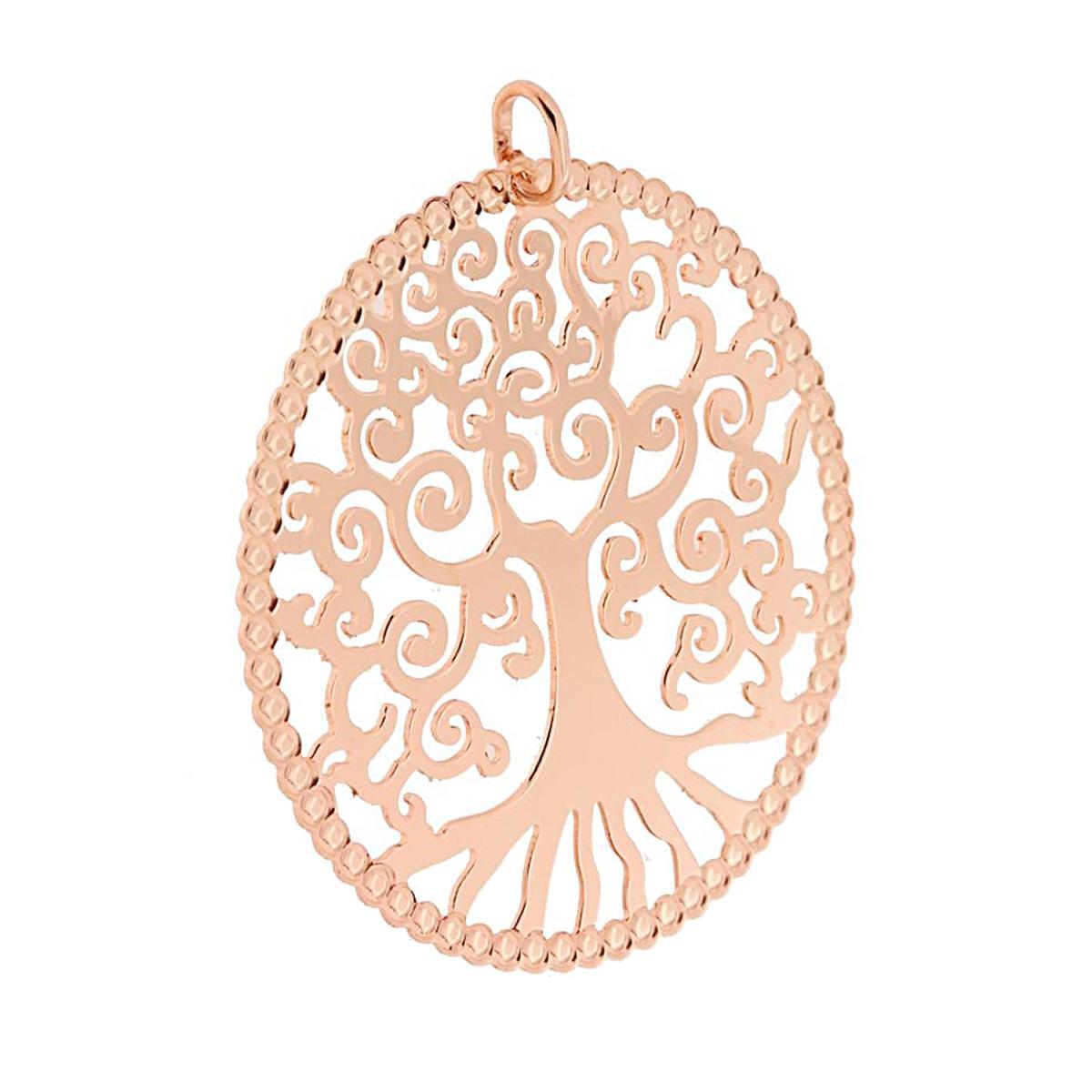 Ciondolo Medaglione mm 50 Albero della Vita plain in ARGENTO 925 Galvanica Rosa