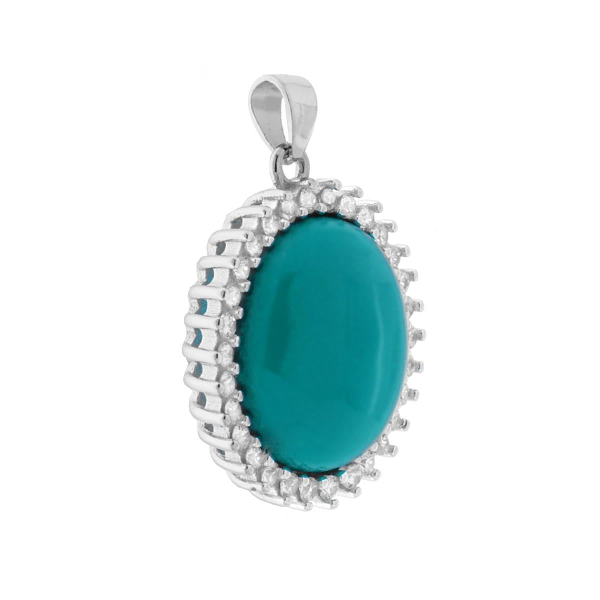 Ciondolo di forma Ovale con pasta di Turchese contornato con Zirconi Bianchi.