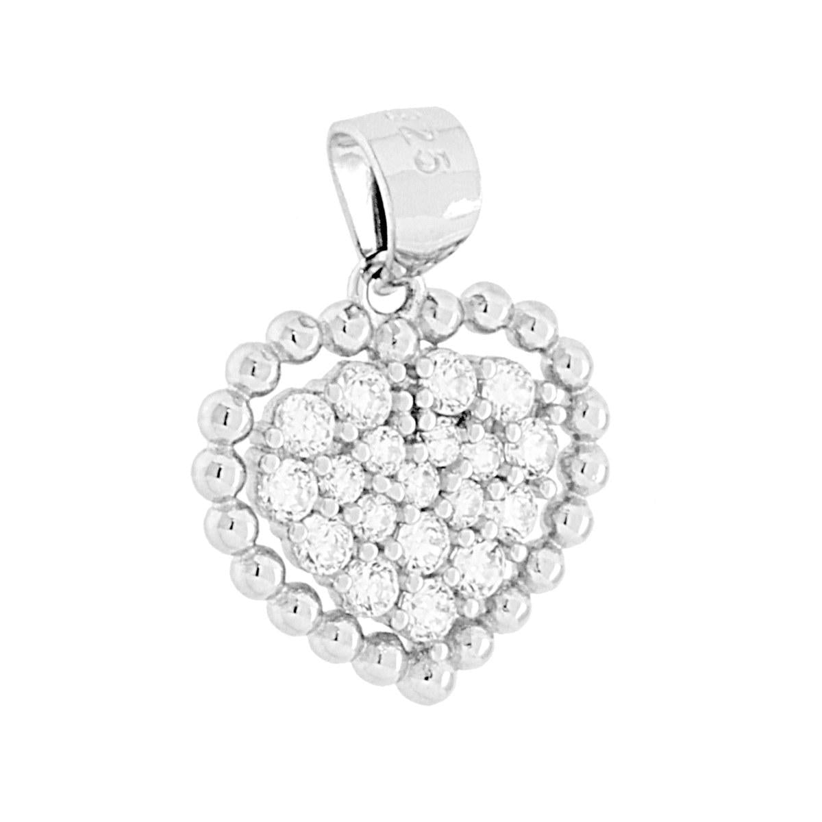 Ciondolo Pallinato con Cuore con Cubic Zirconia Bianchi in ARGENTO 925 Galvanica Rodio