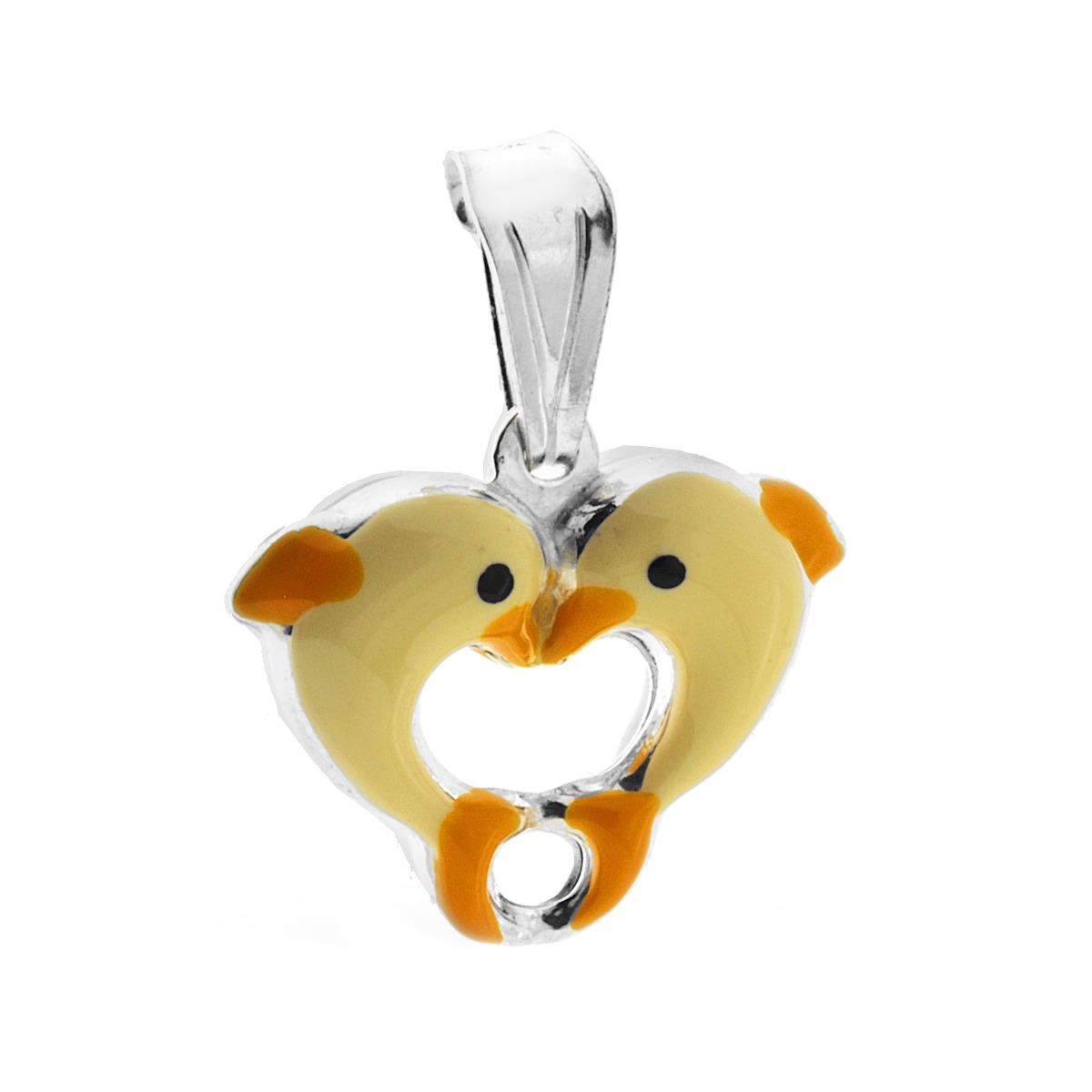Ciondolo per Bimbo e Bimba con Delfini smaltato Giallo in ARGENTO 925